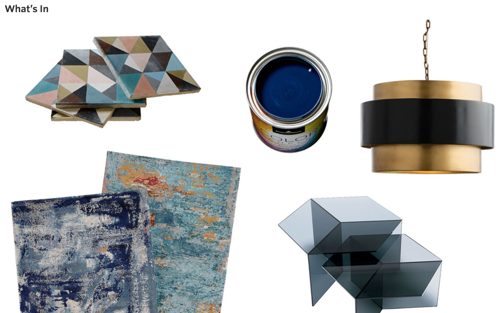 Thanks to the allure of indoor/outdoor living, colorful concrete tiles (such as these from Amethyst Artisan shown here) continue to move from commercial to home spaces, said Los Angeles designer David John Dick : “It’s a perfect combination of graphic design and interior design.” Sam Allen, a Connecticut designer, views them as a sneaky image-booster. “These unusual ethnic tiles give the appearance that you are well-traveled,” he said.